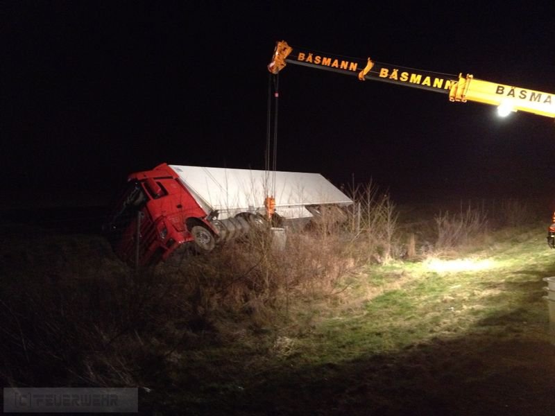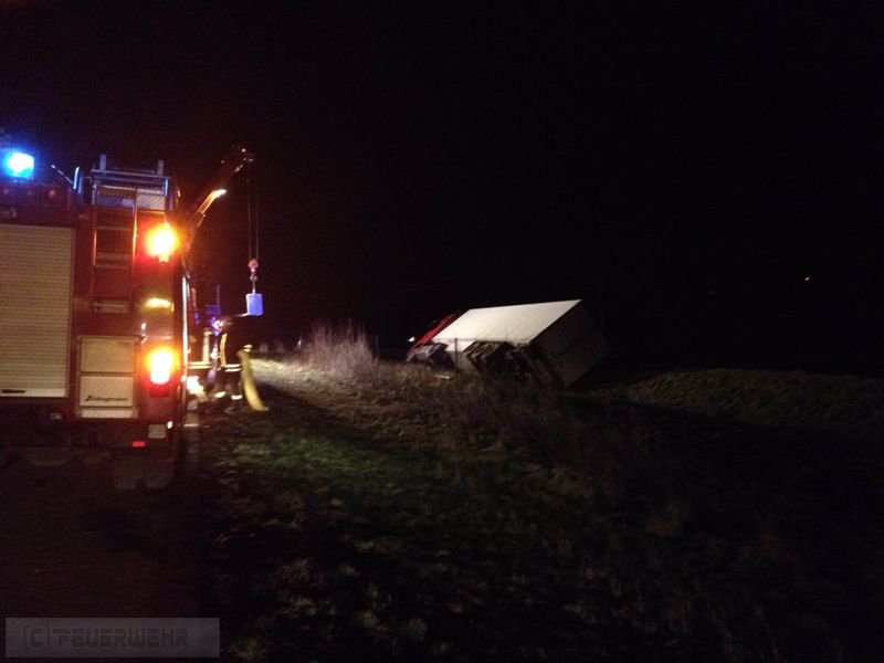 Bockel(tw) Alarm für die Ortsfeuerwehren aus Zeven und Gyhum am 16.02.14 um 02:27 Uhr, es ging auf die Autobahn in Fahrtrichtung Hamburg,bei Kilometer 69,5 ist ein LKW aus noch ungeklärter Ursache von der Fahrbahn abgekommen und in einen Graben gerutscht. Dabei wurde der Kraftstofftank des LKW aufgerissen und größere Mengen Dieselkraftstoff sind dabei ausgelaufen.Direkt an der Einsatzstelle wurden Ölschlengel gesetzt und auf der Aue im Bereich Wehldorf wurden durch die Einsatzkräfte Ölschlengel gesetzt.