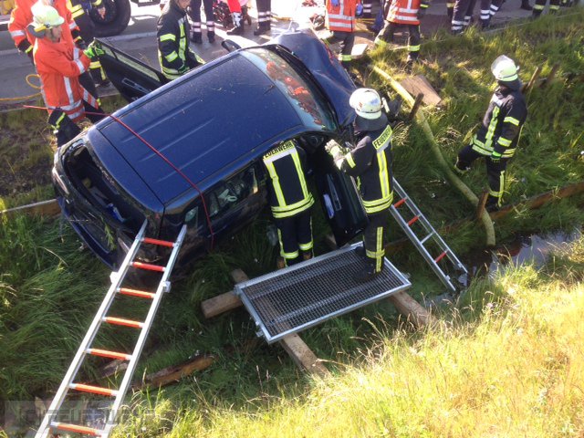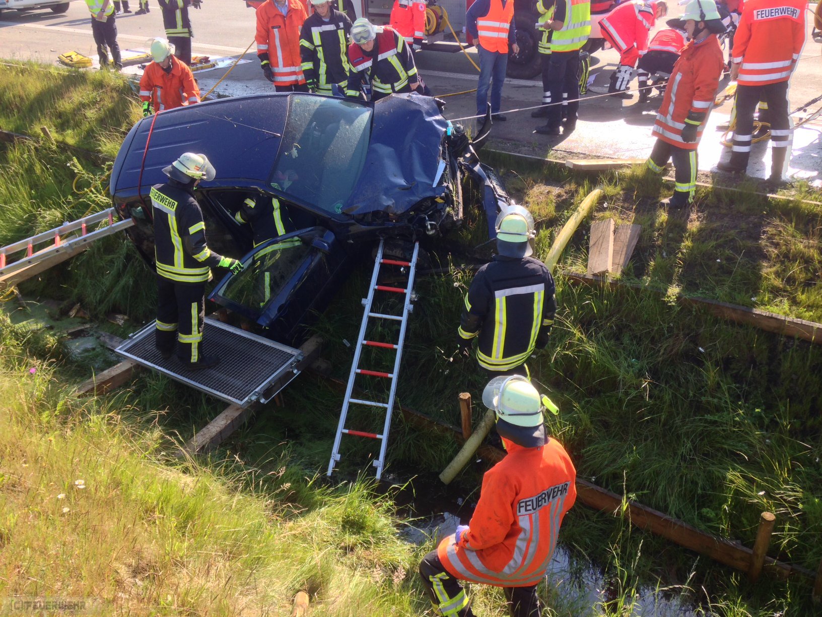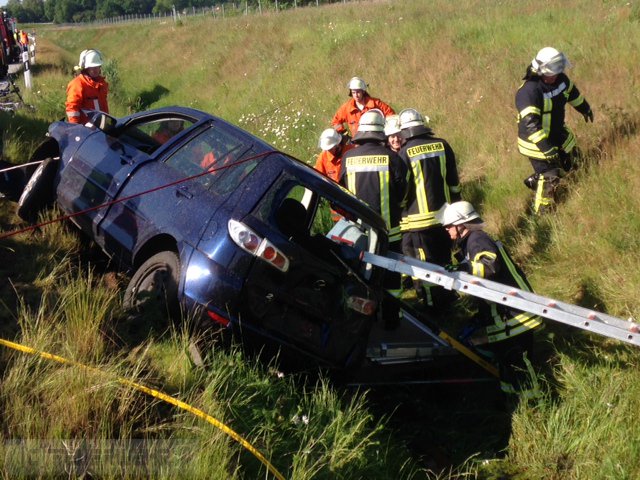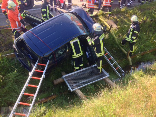 Bockel:Sie waren auf dem Heimweg aus dem Urlaub und hatten nur noch wenige Kilometer vor sich, als ein älteres Ehepaar aus Delmenhorst am Sonntagmorgen auf der A1 verunglückte. Mit schätzungsweise 140 Stundenkilometer war der circa 60-jährige Fahrer eines Mazdas auf der Mittelspur unterwegs in Richtung Bremen. Aus unbekannter Ursache übersah der Mann ein Auto, was ebenfalls auf dem mittleren Streifen unterwegs war, und prallte in dessen Heck. Im Anschluss schleuderte der Mazda nach rechts von der Fahrbahn und prallte in einen Wassergraben, wo er schwer beschädigt zum Stehen kam. Der Fahrer des zweiten Fahrzeuges konnte dieses auf der Standspur abstellen. Insgesamt drei Insassen in dem Auto des Unfallverursachers wurden eingeschlossen und mussten durch die Feuerwehr befreit werden. Fahrer und Beifahrerin kamen mit mittelschweren und schweren Verletzungen ins Klinikum. Der leichtverletzte Lenker des anderen Autos hatte mehr Glück. Er konnte die Fahrt fortsetzen. Der Verkehr wurde an der Unfallstelle vorbeigeleitet, es kam nur zu leichten Beeinträchtigungen.