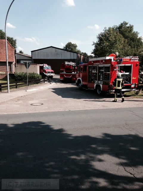 Heeslingen(tw) Die Kameraden der Ortsfeuerwehr Zeven waren am 18.07 gerade von der ausgelösten Brandmeldeanlage zurück am Feuerwehrhaus,als die digitalen Meldeempfänger erneut ausgelösten haben. Diesmal ging es nach Heeslingen, es sollte bei einer Lagerhalle eine Rauchentwicklung aus dem Dache geben. Als die ersten Einsatzkräfte eingetroffen waren, konnte keine Rauchentwicklung festgestellt werden, allertdings konnte Brandgeruch wahrgenommen werden. Mit Unterstützung der Drehleiter wurde ein Teil der Dachhaut geöffnet, allerdings war auch hier keine Feststellung. Nachdem die Halle durch die Einsatzkräfte mehrfach kontrolliert wurde, wurde der Einsatz abgebrochen.