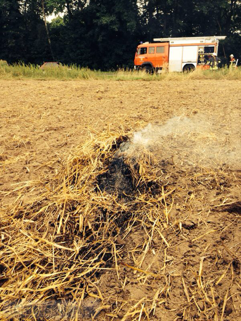 Zeven(tw) Alarm für die Ortsfeuerwehr Zeven am 04.08.14 um 15:02 Uhr, es gin auf die L124 kurz vor Heeslingen solle es auf einem Feld brennen. Die Polizei Zeven sowie der Ortsbrandmeister waren als erstes an der vermeindlichen Brandstelle eingetroffen und konnten allerdings kein Feuer sehen. Gerade als die Polizei Zeven die nähere Umgebung absuchen wollte, konnte man eine kleine Rauchsäule kurz vor Heeslingen entdecken. Auf einem abgeernteten Getreidefeld welches auch bereits umgebrochen wurde, brannte ein kleiner Haufen Strohreste. Mittels Kübelspritze vom LF16 wurde der kleine Strohhaufen abgelöscht.