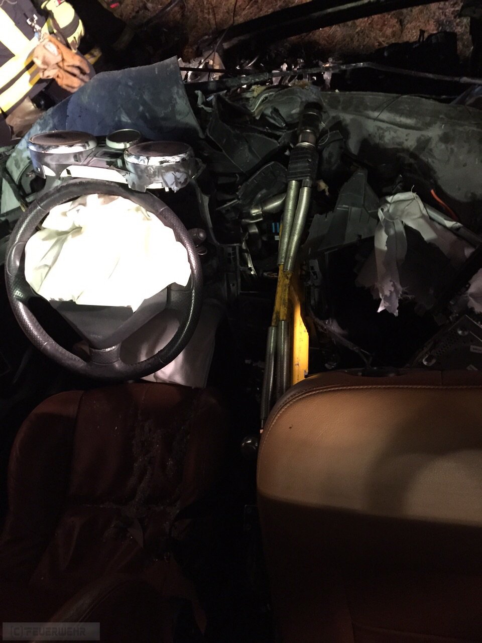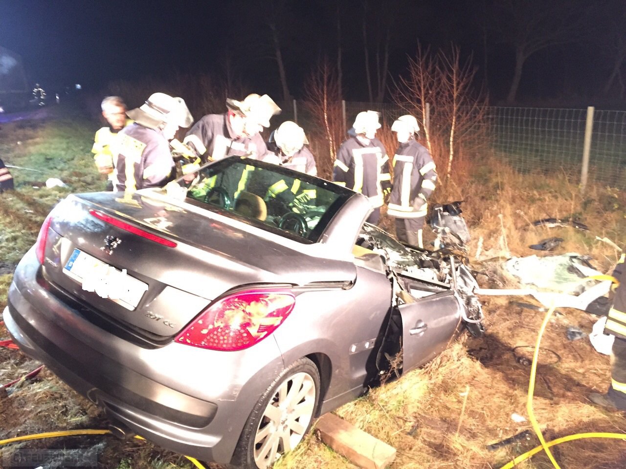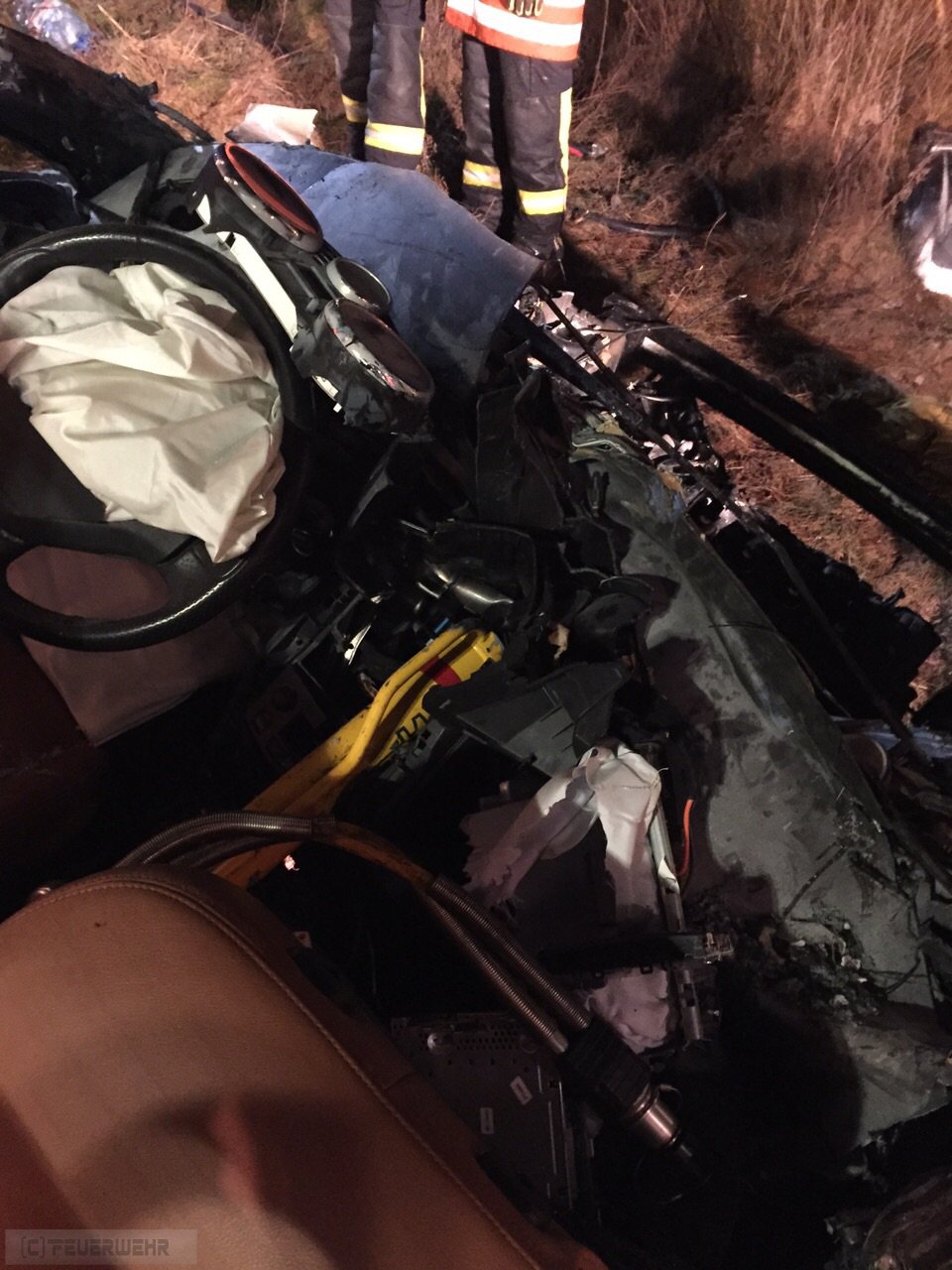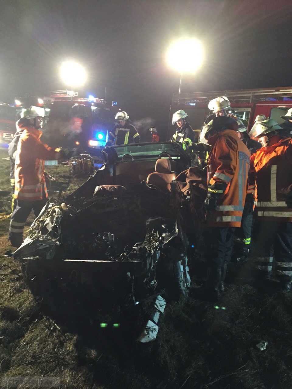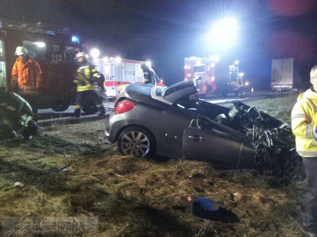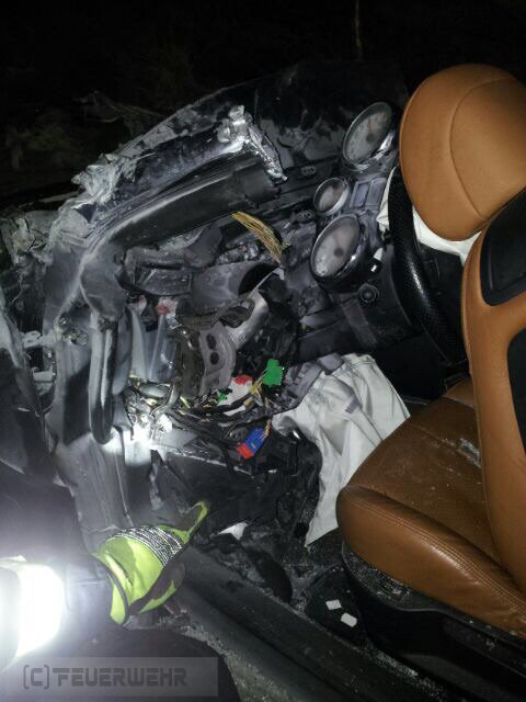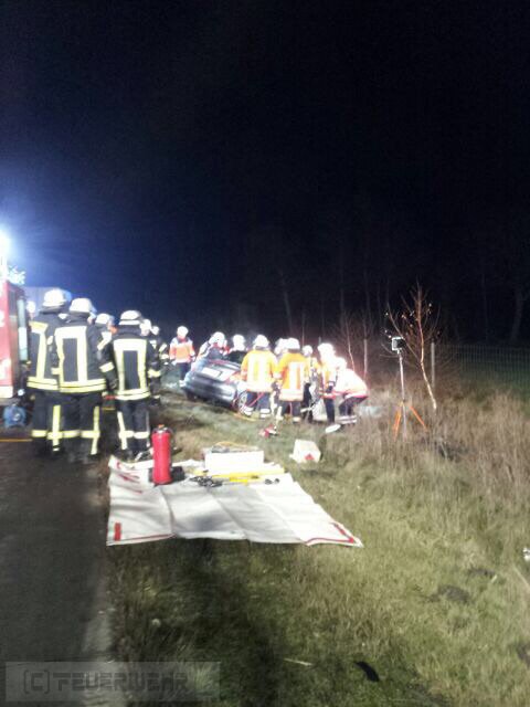 Elsdorf(tw) Alarm für die Ortsfeuerwehren aus Elsdorf und Zeven sowie dem Rettungsdienst aus Zeven zu einem schweren Verkehrsunfall auf der Autobahn A1 in Fahrtrichtung Hamburg bei Kilometer 61 am 13.12.14 um 21:25 Uhr. Aus bisher noch ungeklärter Ursache ist der Fahrzeugführer mit voller Wucht auf das Heck eines vorausfahrenden Sattelaufliegers geprallt, dass Fahrzeug wurde anschließend in den Seitenraum geschleudert. Durch die Wucht des Aufpralles wurde der Fahrer dabei in seinem Fahrzeug eingeklemmt. Das Fahrzeug fing anschließend im Motorraum an zu brennen. Die zuerst eingetroffenen Beamten der Autobahnpolizei konnten das Feuer mittels Feuerlöschern soweit eindämmen, bis die Ortsfeuerwehr Elsdorf mit ihrem Tanklöschfahrzeug eingetroffen war. Die Person wurde mittels hydraulischen Rettungsgeräten (teilweise wurden 3 Geräte gleichzeitig eingesetzt) aus dem Fahrzeug gerettet und anschließend an den Rettungsdienst übergeben.