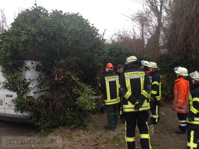 Zeven(tw) Der Sturm Elon richtet am 09.01.15 im Stadtgebiet von Zeven nur geringen Schaden an, die Ortsfeuerwehr Zeven muste nur zu zwei umgestürzten Bäumen ausrücken. In der Alt Bremer Straße in Zeven ist ein Baum auf einen Kleintransporter gefallen und hat glücklicherweise nur geringen Sachschaden angerichtet. Mittels Motorkettensäge wurde der Baum klein gesägt und der Besitzer konnte anschließend mit seinem Fahrzeug die Heimreise antreten.