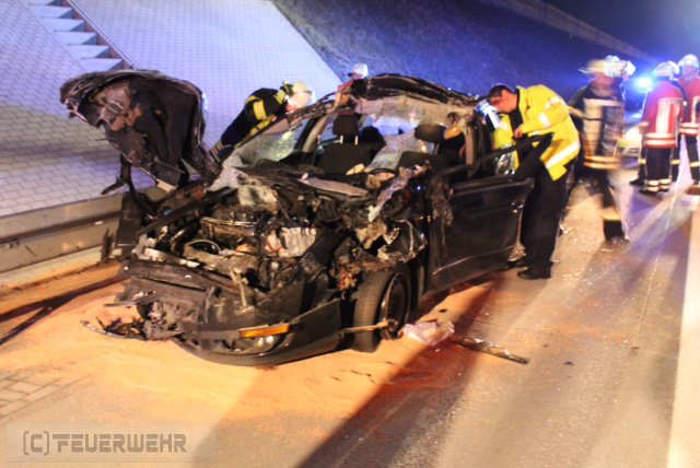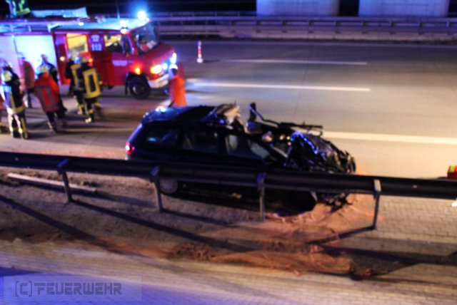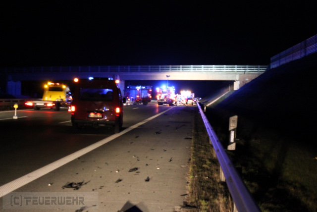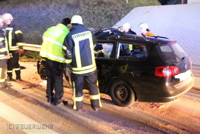 Elsdorf(tw) Alarm für die Ortsfeuerwehren aus Elsdorf und Zeven am 07.03.15 um 21:40 Uhr zu einem Verkehrsunfall auf der Autobahn 1 in Fahrtrichtung Bremen kurz vor der AS Bockel. Zunächst wurde nur der Rettungsdienst aus Zeven und Sittensen mit der Alarmmeldung Verkehrsunfall alarmiert, kurz nach Alarm für den Rettungsdienst hat der Disponent in der Einsatzleitstelle die Rückmeldung erhalten, dass die Person im Fahrzeug eingeklemmt sei. Der Fahrer eines PKW ist aus noch ungeklärter Ursache in das Heck eines vor ihm fahrenden LKW gefahren. Kurz nach Eintreffen der Feuerwehr konnte der Fahrer aus seiner misslichen Lage befreit werden und an den Rettungsdienst übergeben werden. Er wurde zur weiteren medizinischen Behandlung in das Krankenhaus nach Rotenburg transportiert.