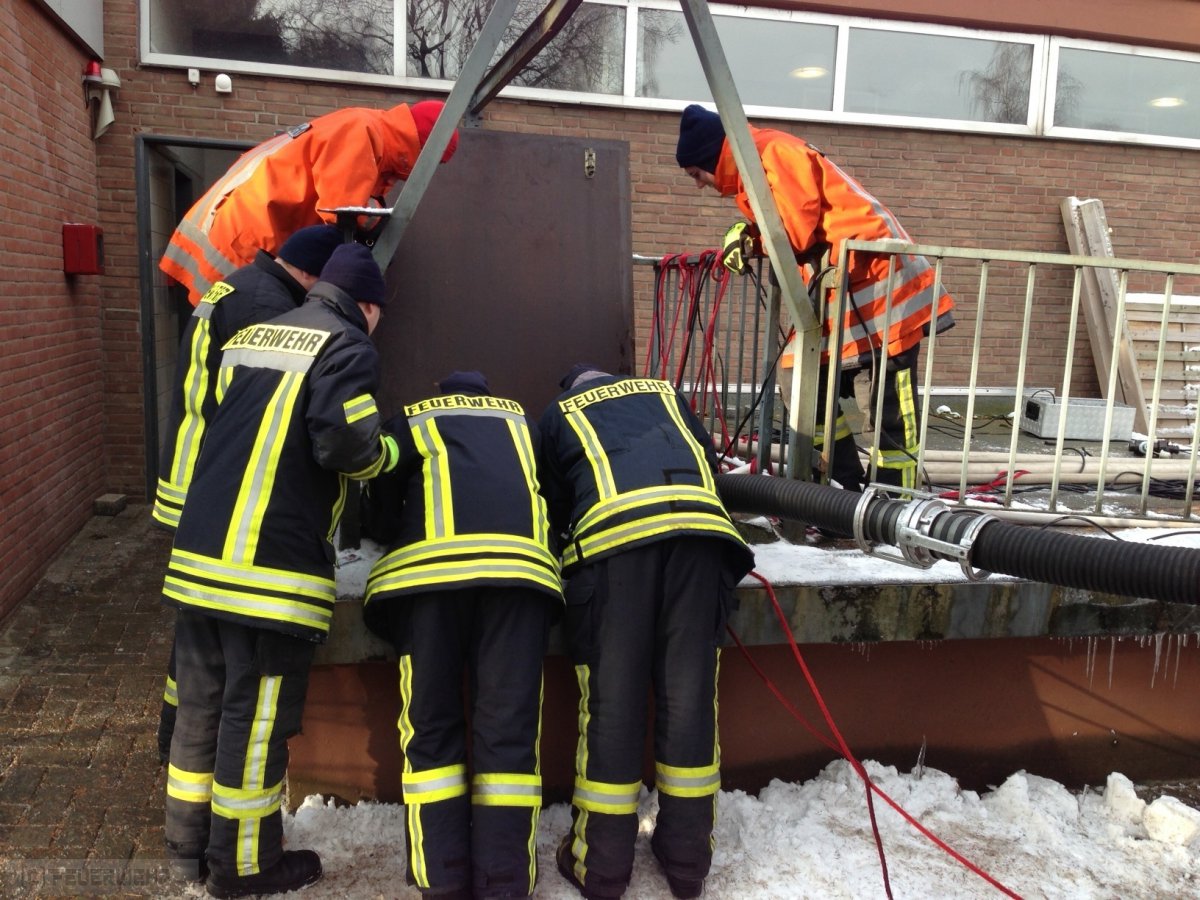Zeven(tw) Keine Langeweile die letzten Tage für die Feuerwehr Zeven, die Kameraden wurden am 13.03 um 05:58 Uhr von der Rettungsleitstelle in Zeven mit dem Einsatzstichwort TH1 Keller voll gelaufen alarmiert. Nach Lageerkundung durch den Ortsbrandmeister konnte festgestellt werden, dass der komplette Keller unter dem Zevener Hallenbad ca. 1 Meter hoch mit Wasser voll gelaufen war. Grund war eine geplatzte Hauptwasserleitung ca. 600.000 Liter Wasser konnten daher zunächst unbemerkt auslaufen. Aufgrund dieser Einsatzlage ließ die Einsatzleitung Vollalarm für die Ortsfeuerwehr Zeven auslösen. Die Kameraden waren ca. 3 Stunden mit einer TS,4 Tauchpumpen und der Heckpumpe vom LF16-12 damit beschäftigt ,das Wasser aus dem Gebäude zu pumpen.