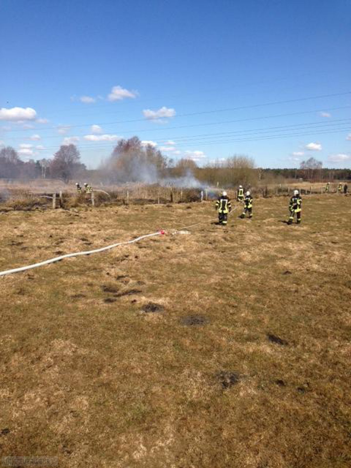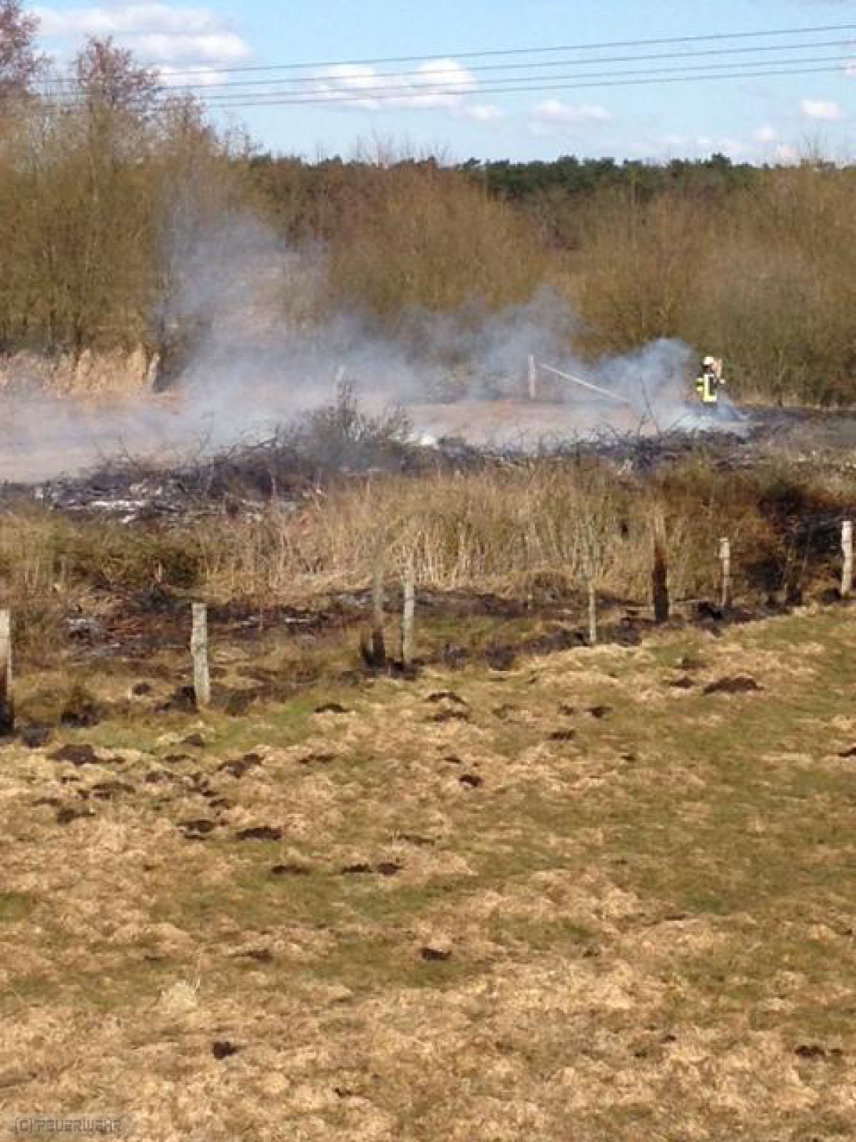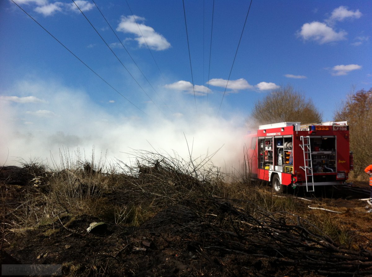 Zeven(tw) Die Ortsfeuerwehr Zeven wurde am 01.04.13 um 12:44 Uhr von der Rettungsleitstelle in Zeven mit dem Einsatzstichwort FW1 brennt Gestrüppfläche in Zeven in der Straße Im neuen Kampe i.R. Brauel alarmiert. Nach Eintreffen der ersten wasserführenden Einsatzfahrzeuge der Ortsfeuerwehr Zeven brannte eine Fläche von ca. 1000m² Gras-und Gestrüpp. Da sich die Einsatzstelle in unwegsamen Gelände befand, wurden umgehend die Ortsfeuerwehren aus Brauel und Heeslingen nachalarmiert. Im Pendelverkehr wurde das Löschwasser an die Einsatzstelle gebracht desweiteren wurde aus einem angrenzenden Bach das Löschwasser an die Einsatzstelle mittels Tragkraftspritzen gepumpt. Die Löscharbeiten wurden weiterhin noch von einem Landwirt mit Güllefass unterstützt. Die Polizei Zeven hat die Ermittlungen zur Brandursache aufgenommen,nach ca. 2 Stunden konnte der Einsatz beendet werden.