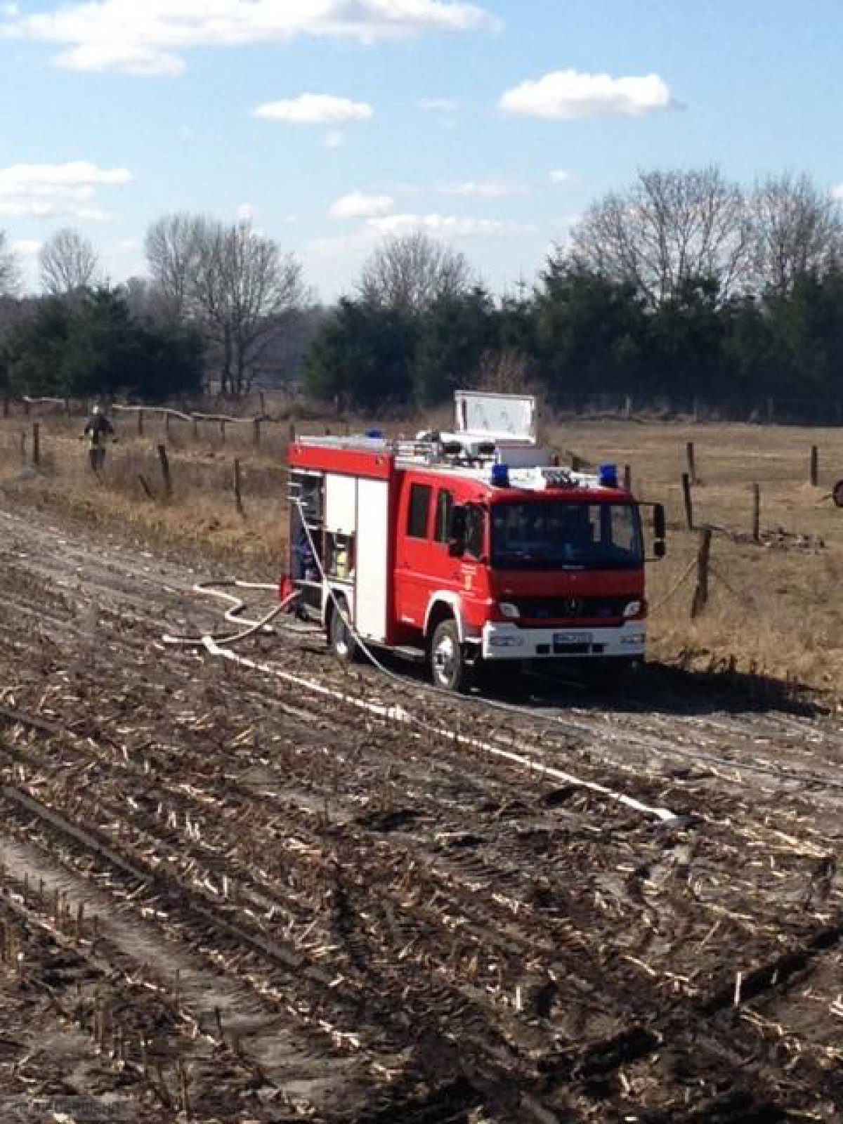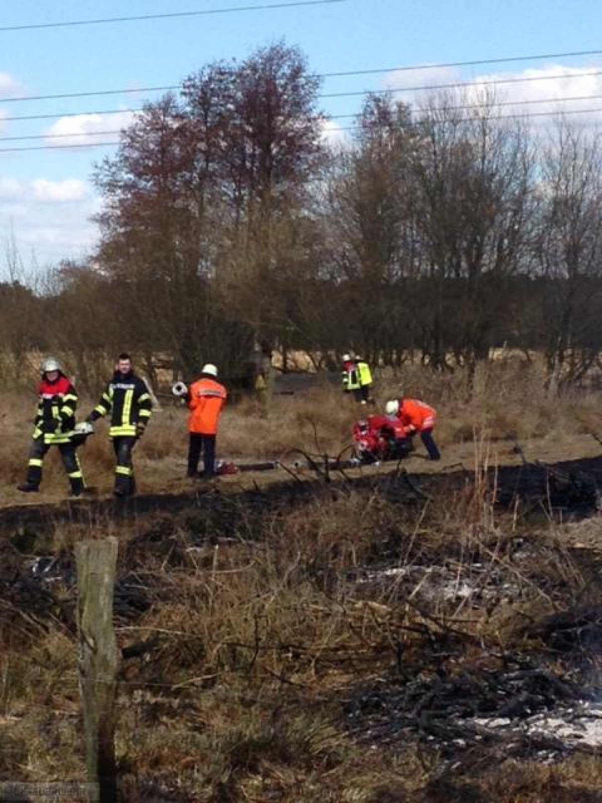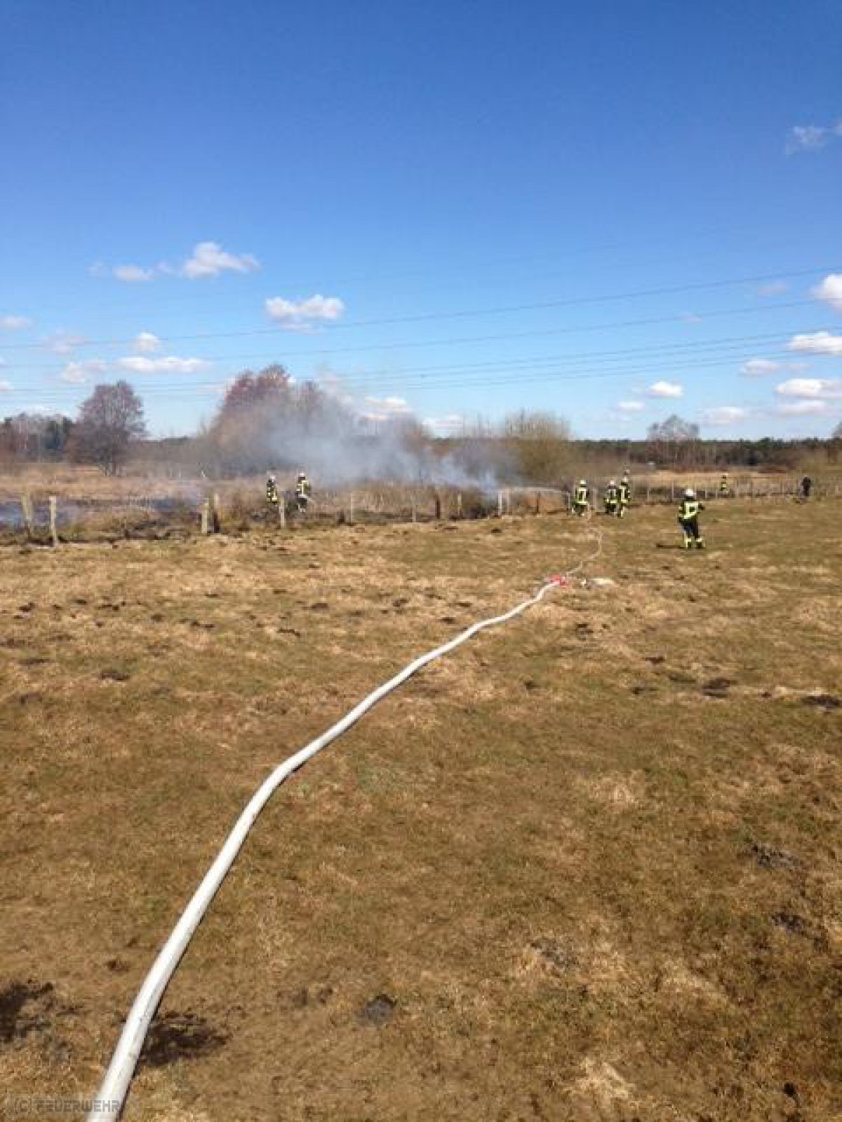 Zeven(tw) Die Ortsfeuerwehr Zeven wurde am 01.04.13 um 12:44 Uhr von der Rettungsleitstelle in Zeven mit dem Einsatzstichwort FW1 brennt Gestrüppfläche in Zeven in der Straße Im neuen Kampe i.R. Brauel alarmiert. Nach Eintreffen der ersten wasserführenden Einsatzfahrzeuge der Ortsfeuerwehr Zeven brannte eine Fläche von ca. 1000m² Gras-und Gestrüpp. Da sich die Einsatzstelle in unwegsamen Gelände befand, wurden umgehend die Ortsfeuerwehren aus Brauel und Heeslingen nachalarmiert. Im Pendelverkehr wurde das Löschwasser an die Einsatzstelle gebracht desweiteren wurde aus einem angrenzenden Bach das Löschwasser an die Einsatzstelle mittels Tragkraftspritzen gepumpt. Die Löscharbeiten wurden weiterhin noch von einem Landwirt mit Güllefass unterstützt. Die Polizei Zeven hat die Ermittlungen zur Brandursache aufgenommen,nach ca. 2 Stunden konnte der Einsatz beendet werden.