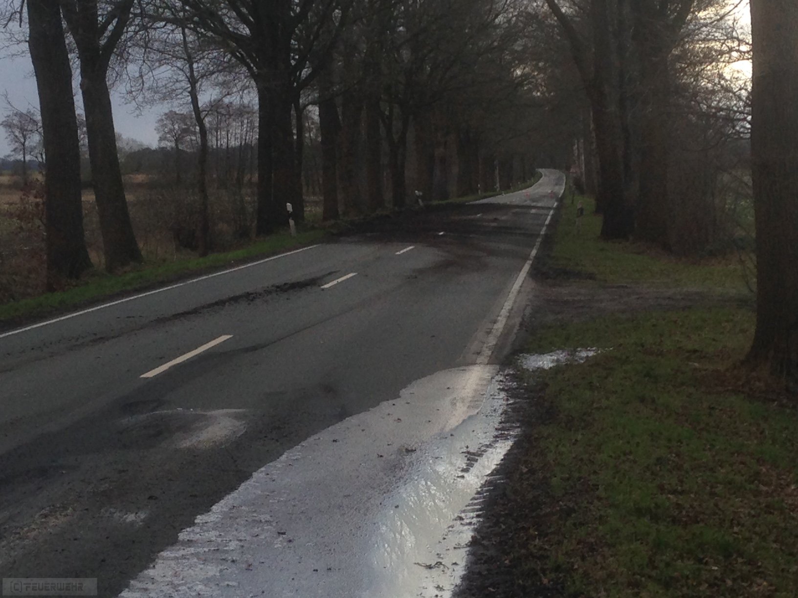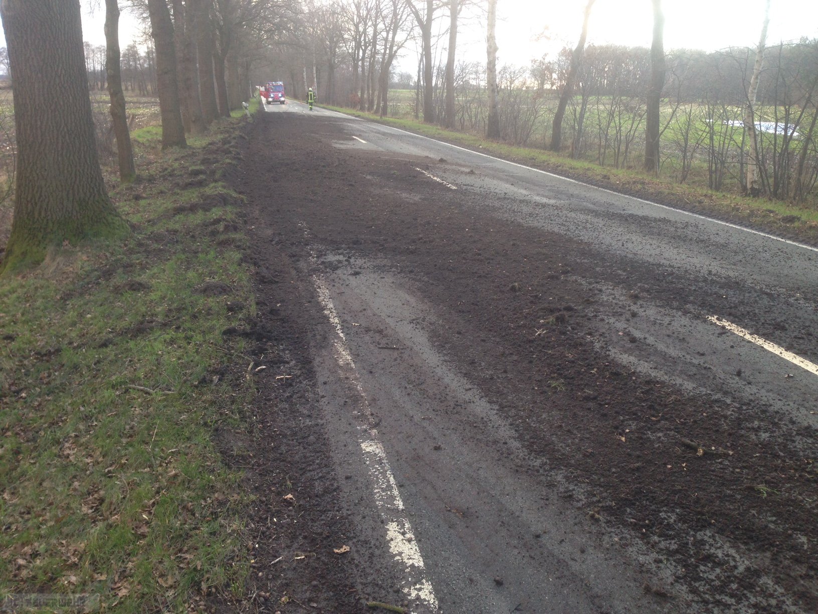 Ein Bergungsunternehmen wurden zusätzlich gerufen, ein Kran stellte dann den Anhänger wieder auf. Die Untere Wasserbehörde wurde ebenfalls kontaktiert, weil die Milch ins Erdreich geflossen ist. Die Wilstedter Wehr blieb noch an der Einsatzstelle und sicherte alles ab. Die Absperrmaßnahmen übernahm dann nach 2 Stunden die Straßenmeisterei, somit konnten die restlichen Einsatzkräfte die Rückfahrt antreten. Insgesamt waren 20 Kameraden mit 6 Einsatzfahrzeugen aus 3 Wehren etwas mehr als 2 Stunden im Einsatz. Die Landstraße war von Einsatzbeginn an gesperrt und musste noch weitere Stunden zu bleiben.