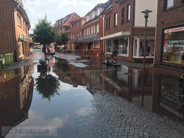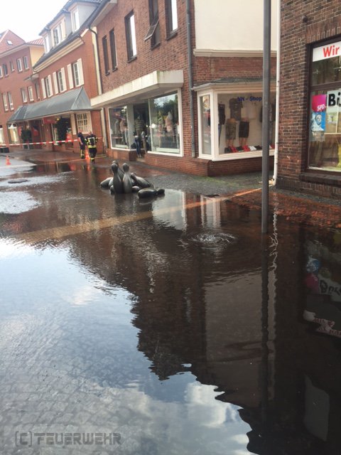 Aufgrund von kurzem Starkregen wurden einige Straßen in der Innenstadt überflutet
