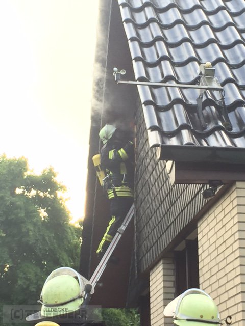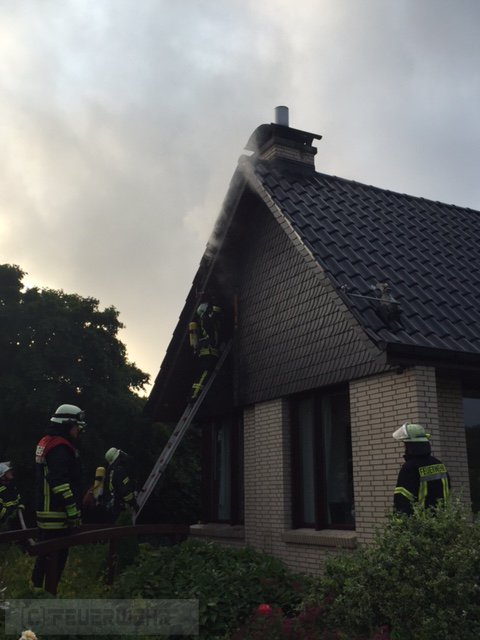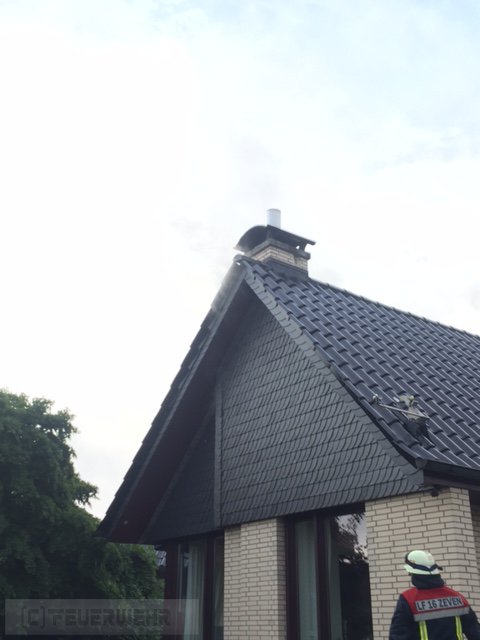 Zeven, 24.06.2016 (PK) Nachdem bereits am Tag zuvor ein Gebäude durch einen Blitz getroffen wurde, kam es am Freitagabend erneut zu einem Einsatz der Feuerwehr. Im Zevener „Schäferkamp“ schlug ein Blitz in den Schornstein eines Einfamilienhauses ein und setzte die verbaute Holzkonstruktion im Dachstuhl in Brand. Durch das schnelle Eingreifen der Feuerwehr Zeven