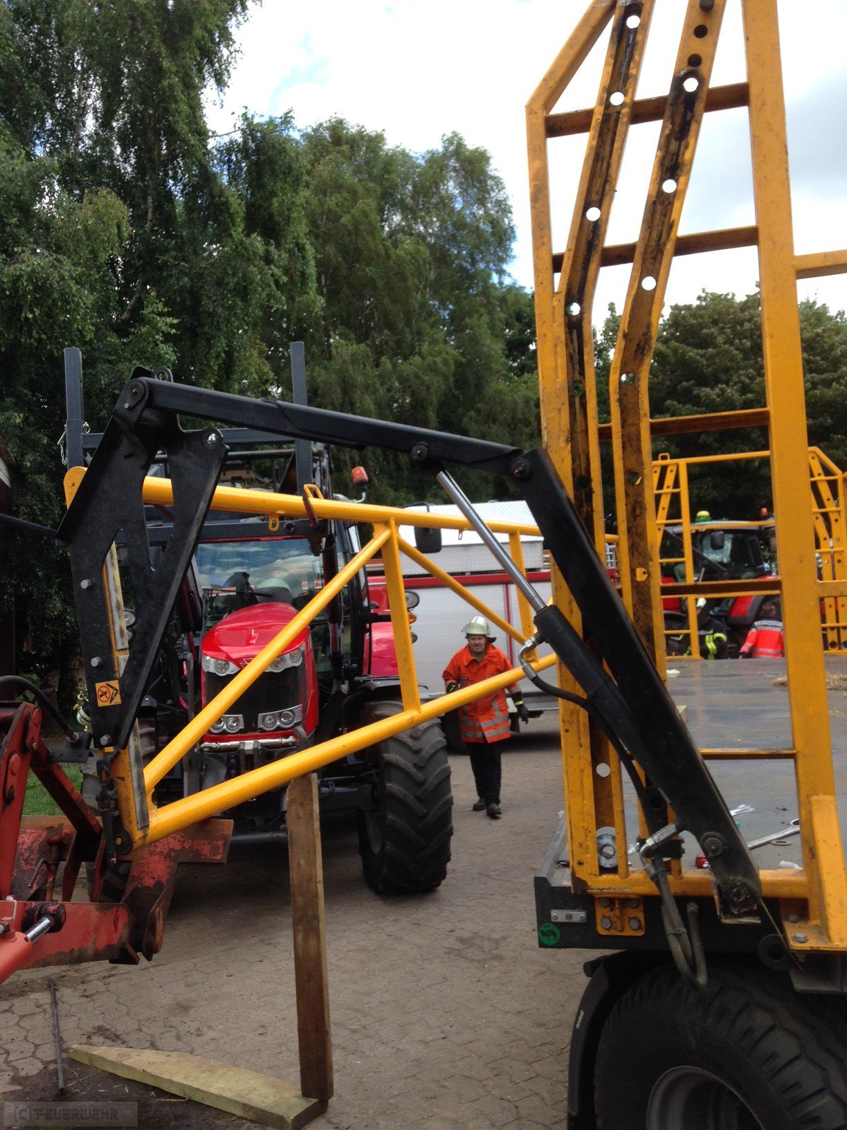 Frankenbostel(tw) Die Ortsfeuerwehren aus Zeven und Elsdorf sowie der Rettungsdienst aus Zeven wurden am 01.08.16 um 11:59 Uhr von der Rettungsleitstelle in Zeven zu einem Arbeitsunfall auf einem landwirtschaftlichen Lohnbetrieb alarmiert. Während der Reparaturarbeiten an einem Strohtransportanhänger wurde eine Person mit dem Fuß zwischen Stahltrebe und Hydraulikzylinder eingeklemmt. Bei Eintreffen der ersten Kräfte wurden durch Mitarbeiter erste Sicherungsmaßnahmen eingeleitet. Mit Hilfe von hydraulischen Rettungsgeräten wurde die Person aus ihrer misslichen Lage befreit und anschließend vom Rettungsdienst ins Krankenhaus nach Rotenburg transportiert.