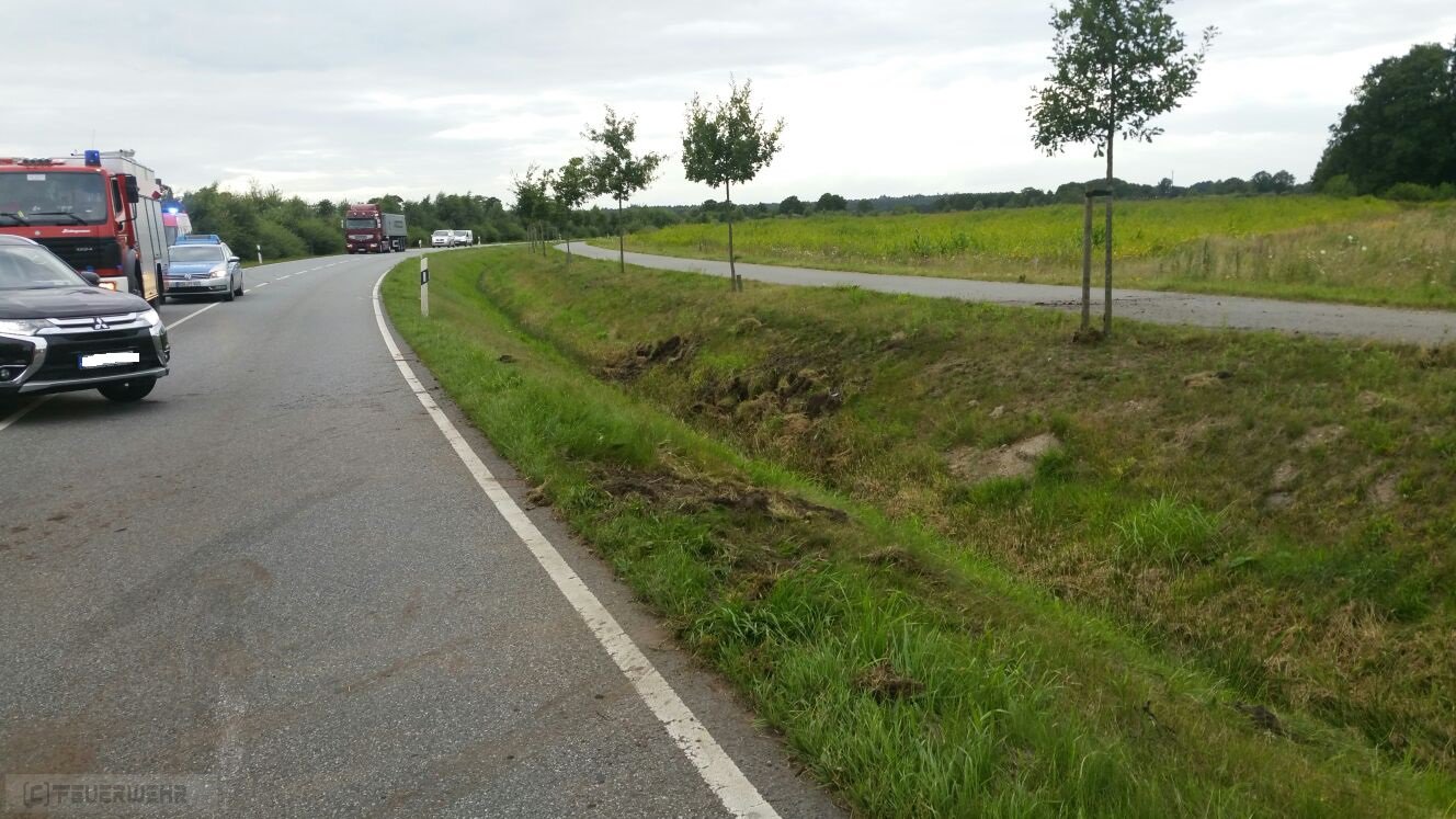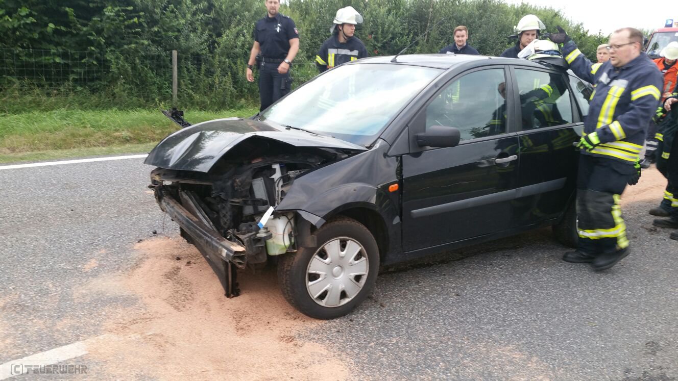 Zeven(tw) Alarm für die Ortsfeuerwehr Zeven am 08.08.16 um 19:02 Uhr,gemeldet wurden auslaufende Betriebsstoffe nach Verkehrsunfall. Die Ölspur wurde abgestreut und die verletzten Fahrzeuginsassen wurden bis zum Eintreffen des Rettungsdienstes durch die Kameraden der Ortsfeuerwehr Zeven versorgt.