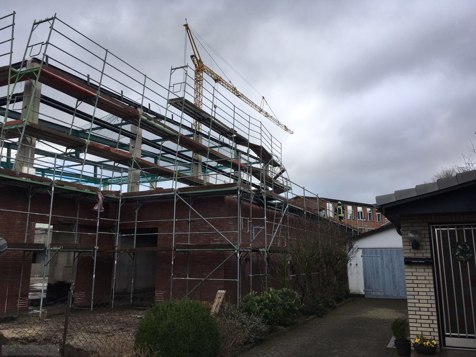 Zeven(tw) Alarm für die Ortsfeuerwehr Zeven am 18.03.17 um 08:32 Uhr zu einer technischen Hilfeleistung im Zevener Lerchenweg. Aufgrund von Sturmtief Eckhard drohte ein Baugerüst auf ein Wohnhaus zu fallen. Gerüstbauer waren gerade dabei, das Baugerüst zu verankern als das Gerüst durch den Sturm umgeweht wurde. Die Gerüstbauerr auf dem Baugerüst konnten sich gerade noch in Sicherheit bringen. Durch die Feuerwehr wurde das Baugerüst gesichert bzw. einige Teile kontrolliert zu Fall gebracht.