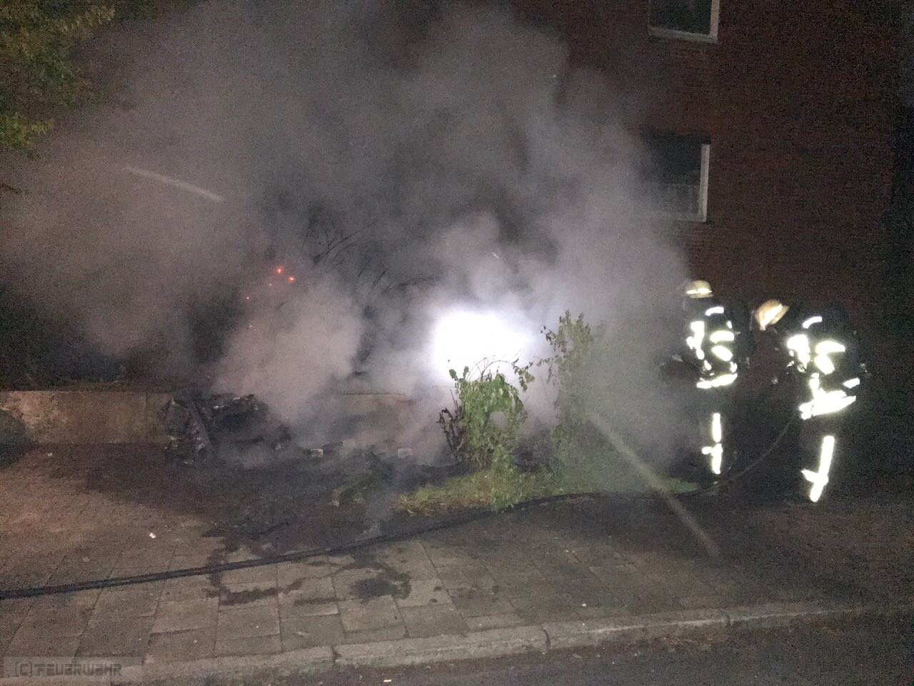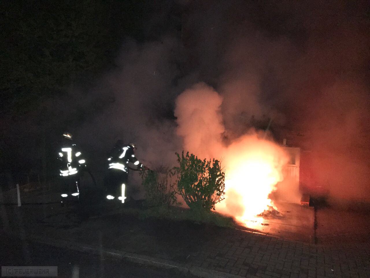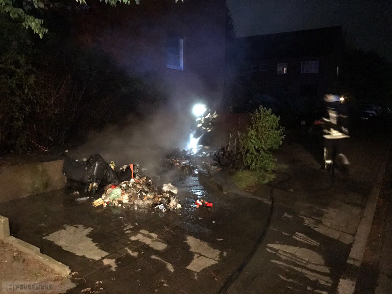 Zeven(tw) Alarm für die Ortsfeuerwehr Zeven am 13.05.17 um 02:46 Uhr zu einem brennenden Müllcontainer. Bei Eintreffen der ersten Kräfte brannten zwei große 1000l Müllcontainer aus Kunststoff an einem Mehrfamilienhaus. Ein Trupp unter Atemschutz konnte das Feuer zügig ablöschen, die Einsatzstelle wurde abschließend mit der Wärmebildkamera kontrolliert. Die Polizei Zeven hat die Ermittlungen zur Brandursache aufgenommen, die war nicht der erste Einsatz an der selben Adresse !!