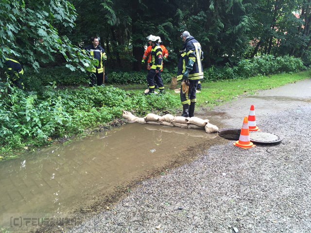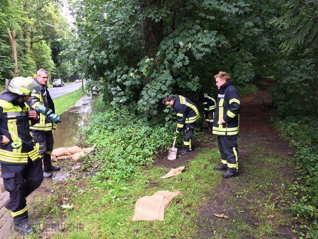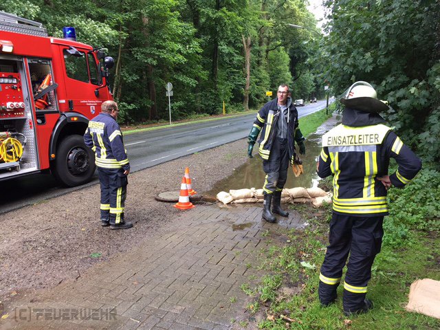 NAchwehen vom Unwetter am 15.08 beschäftigte die Feuerwehr Zeven am 20.08.17, gegen 13:25 Uhr wurde die Ortsfeuerwehr Zeven durch die Polizei Zeven angefordert. In der Bäckerstraße in Höhe des ehemaligen Haus der Jugend sind große Mengen Abwasser über den Gehweg gelaufen, mittels Sandsacksperren wurden die Oberflächenwassereinläufe gesichert,das Schmutzwasser wurde so umgeleitet, dass es in den richtigen Kanaleinlauf fließen kann. Die Einsatzstelle wurde abgesichert und an den Bauhof übergeben.