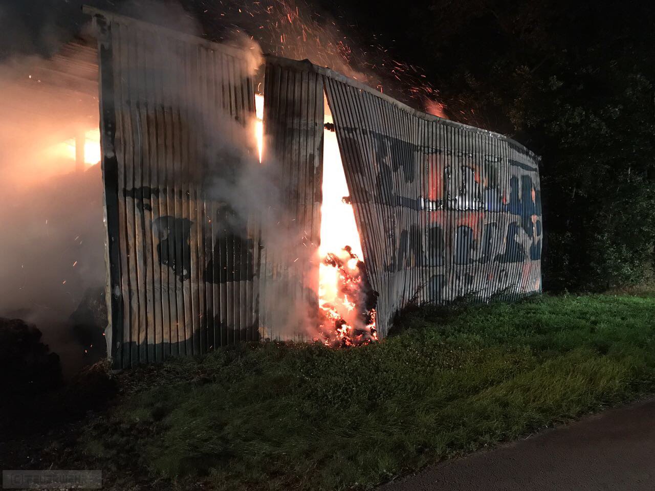 sg) Großeinsatz für die Feuerwehren in der Samtgemeinde Tarmstedt: Gegen kurz nach Mitternacht brannte in Dipshorn in der Gemeinde Vorwerk eine etwa 200 Quadratmeter große Scheune, in der Rundballen gelagert waren. Beim Eintreffen der ersten Kräfte stand der etwa 8 x 25 Meter große Unterstand bereits völlig in Flammen. Die Feuerwehrleute mussten zunächst lange Schlauchleitungen verlegen, um überhaupt genügend Wasser an der Einsatzstelle zur Verfügung zu haben. Mit fünf Rohren kämpften die rund 70 Einsatzkräfte dann bis in den Morgen gegen die immer wieder in den Stroh- und Heuballen auflodernden Flammen. Mit Hilfe von Traktoren wurden die Ballen später auseinandergezogen und gezielt abgelöscht.Warum das Feuer ausgebrochen ist, steht noch nicht fest. Brandstiftung kann aber nicht ausgeschlossen werden.