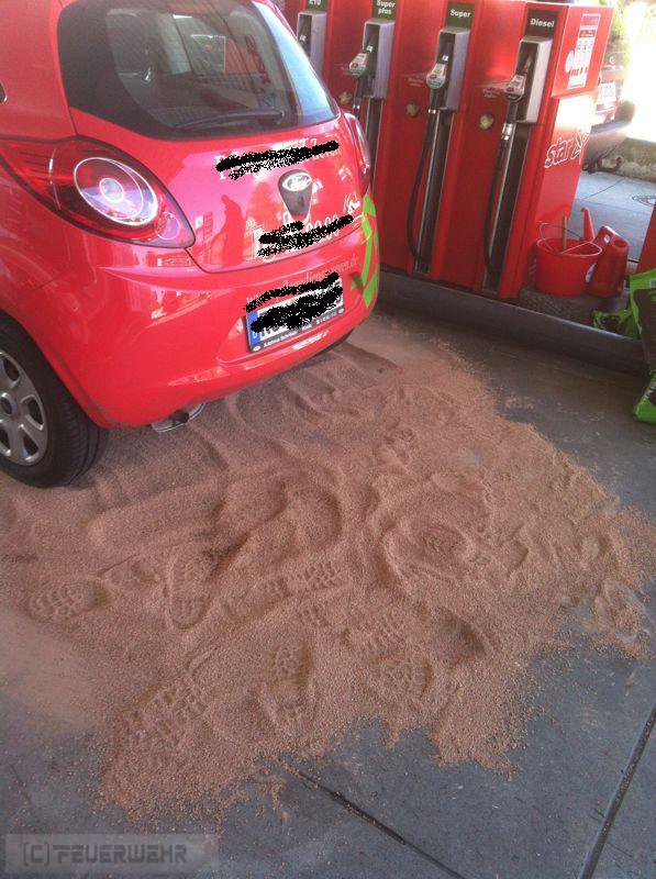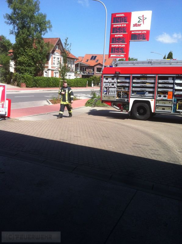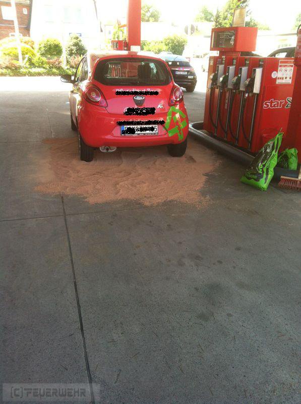 Zeven(tw) Die Ortsfeuerwehr Zeven wurde am 31.05.13 um 11:03 Uhr von Rettungsleistelle in Zeven mit dem Einsatzstichwort TH1,Kraftstoff aus PKW ausgelaufen alarmiert. Nach dem Tankvorgang ist aufgrund eines technischen defektes an dem PKW der komplette Tankinhalt des Fahrzeuges ausgelaufen.