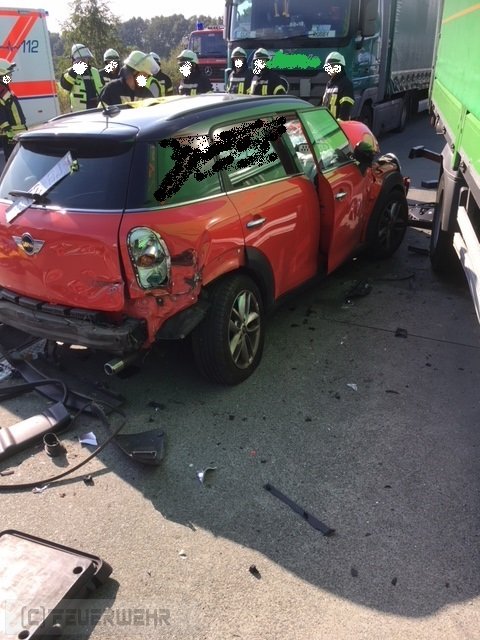 Elsdorf(tw) Alarm für die Ortsfeuerwehren aus Zeven,Elsdorf und Zeven zu einem schweren Verkehrsunfall mit einer eingeklemmten Person auf der Autobahn 1 in Fahrtrichtung Hamburg bei Kilometer 60,6. Der Fahrer eines Mini Cooper ist aus bisher noch ungeklärter Ursache mit einem anderen LKW zusammen gestoßen und der fahrer wurde mit schweren Verletzungen in seinem Fahrzeug eingeklemmt. Mittels hydraulischem Rettungsgerät wurde der Fahrer aus seiner misslichen Lage befreit. Mit dem Rettungshubschrauber Christoph Weser wurde der Patient in ein Krankenhaus geflogen.