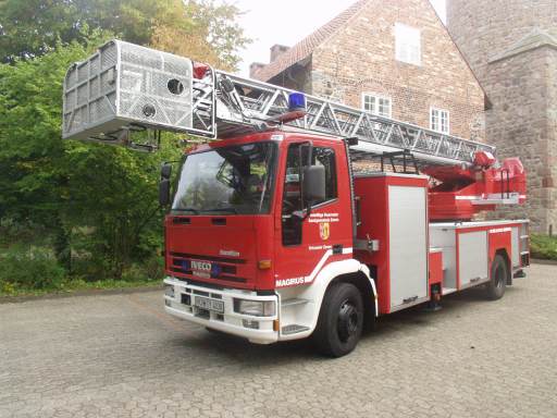 DLAK 23/12Drehleiter Vollautomatisch mit Korb 23/12 Die neue Drehleiter DLAK 23/12 wurde Mitte 2024 als Ersatz für die 1997 in Dienst gestellte DLK23/12 beschafft. Die Abkürzung DLAK bezeichnet dabei eine Drehleiter mit kombinierten Leiterbewegungen (Automatik), einem Rettungskorb sowie einer Nenn-Rettungshöhe von 23 m bei einer Nenn-Ausladung von 12 m. |