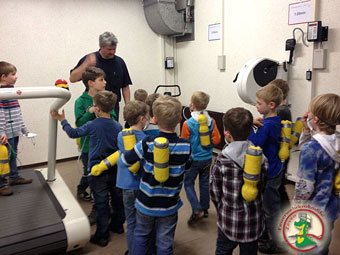 Zum Schluss wurde noch die Frage geklärt, wie die Luft in die Flasche kommt. Die Kinder waren begeistert und wissen jetzt alles über den Einsatz der Atemschutzgeräte.