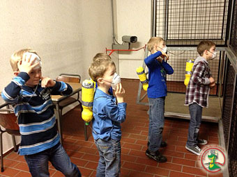 Mit den fertigen Geräten hat die Kinderfeuerwehr dann am 17.04.2013 sogar die richtige Atemschutzstecke der Feuerwehrtechnischen Zentrale (FTZ) besucht, in der auch die "großen Atemschutzgeräteträger" ausgebildet werden und jährlich ihren Leistungsnachweis erbringen müssen. Die Strecke ist eine Kombination aus Kraftübungen und einem Kriechgang mit Türen, Leitern und anderen Hindernissen.